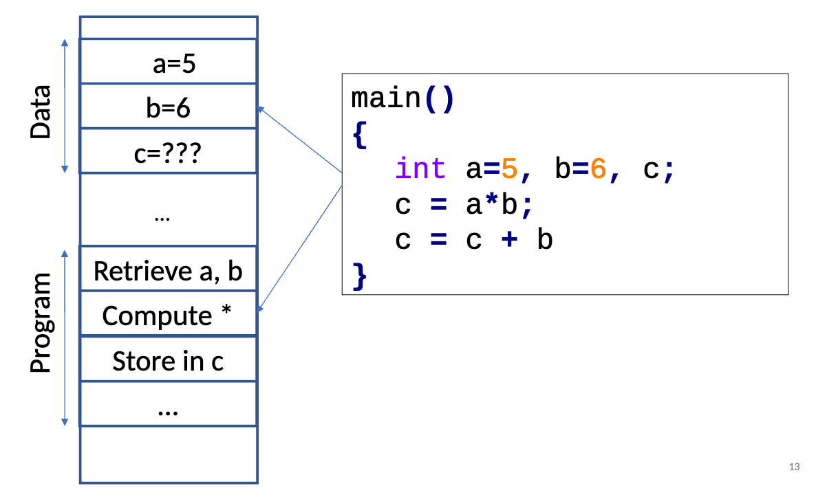 内存用于存both program instructions and data.