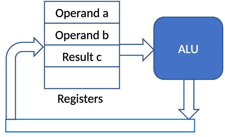 uses the ALU to compute the sum and stores the result in the register c.