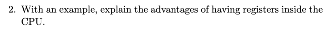 Acces to registers inside the CPU is much faster than main mem- ory. You may save read and write-access to memory by using registers which is accessed frequently. The instructions given in the first ques-tion are an example: the registers a and b are used several times, saving memory access time.