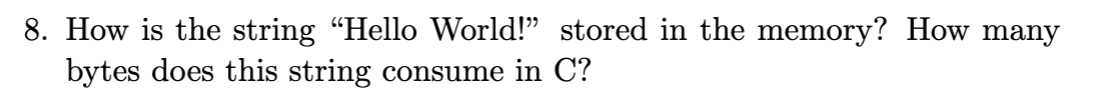 String is stored as a continuous array of char in memory, 13bytes totle, 12 for hello world! and 1 for \0