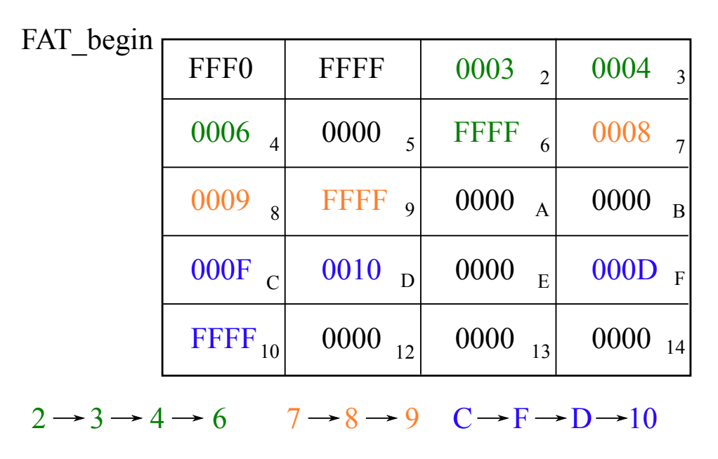 F(ile) A(llocation) T(able),用于解释文件系统概念。现代的文件系统往往更复杂。这里采用FAT16讲解。