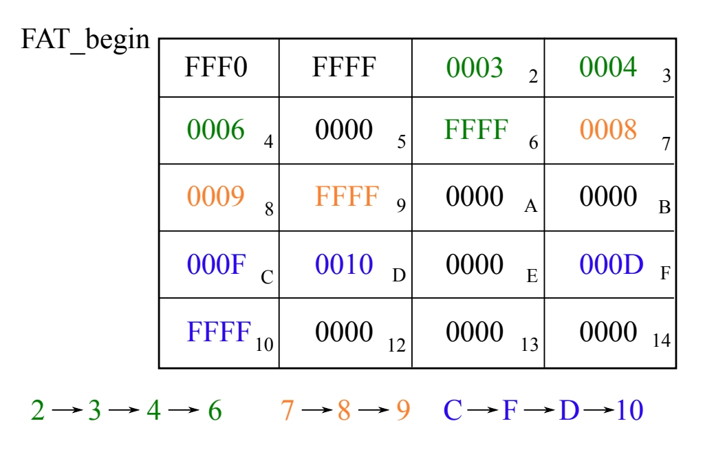 (这里:假设簇 = 1 扇区)
