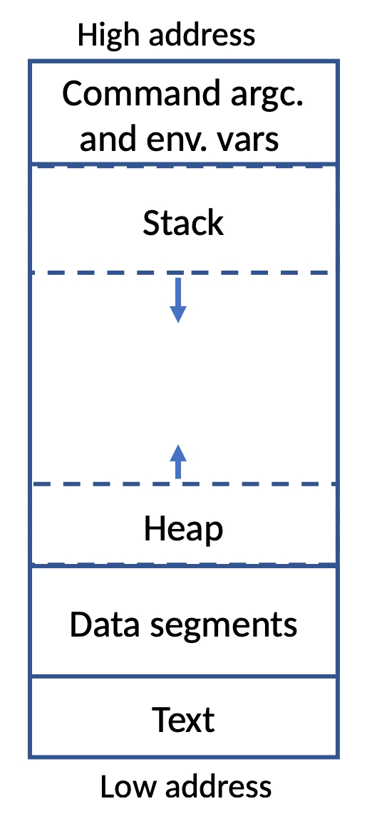 Heap段用于存储动态分配的变量。注意,图只是演示,heap段不一定从data段后开始。