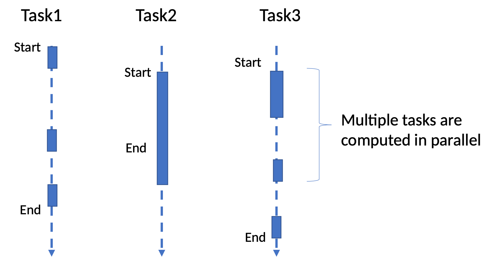 • Concurrent tasks may not be parallel (Task1 and Task3)