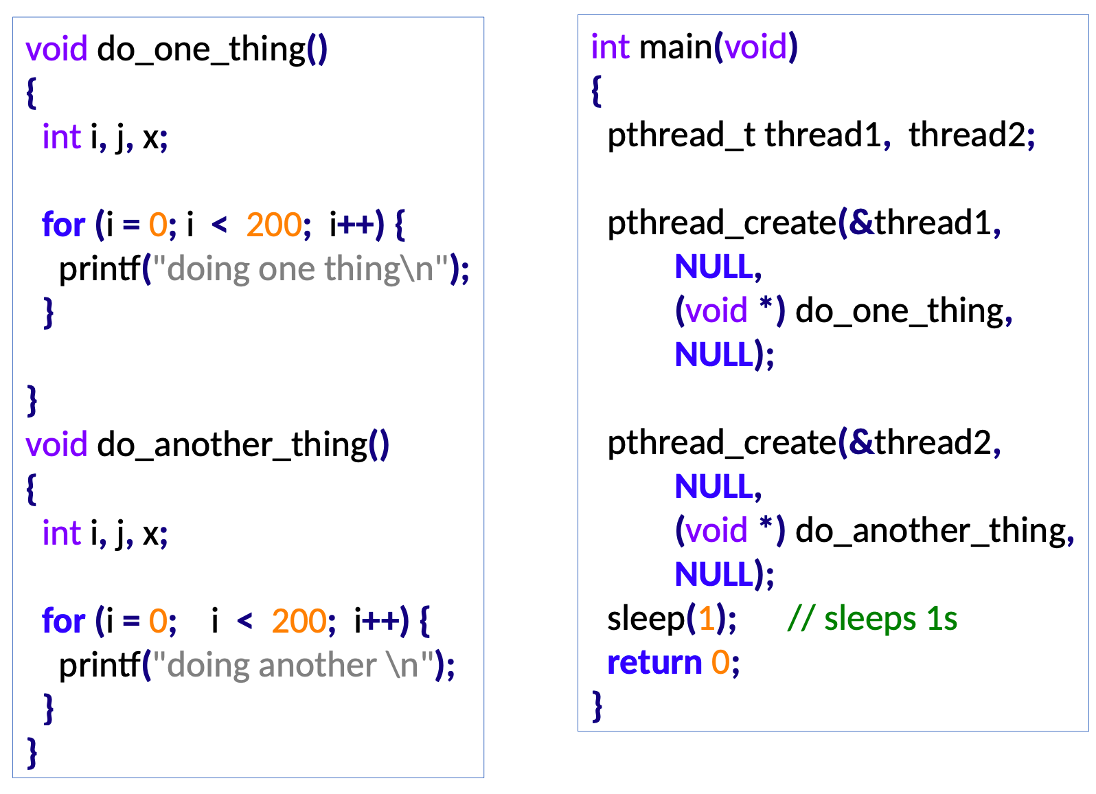main线程不会自动等待线程1,2的结束再结束,所以如果不加sleep(1),那么就打印不出来东西,因为main进程结束了,整个就结束了。为了解决这个问题,我们就需要介绍pthreads的Synchronization Mechanism
