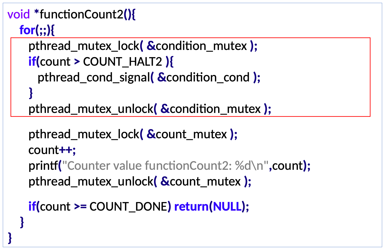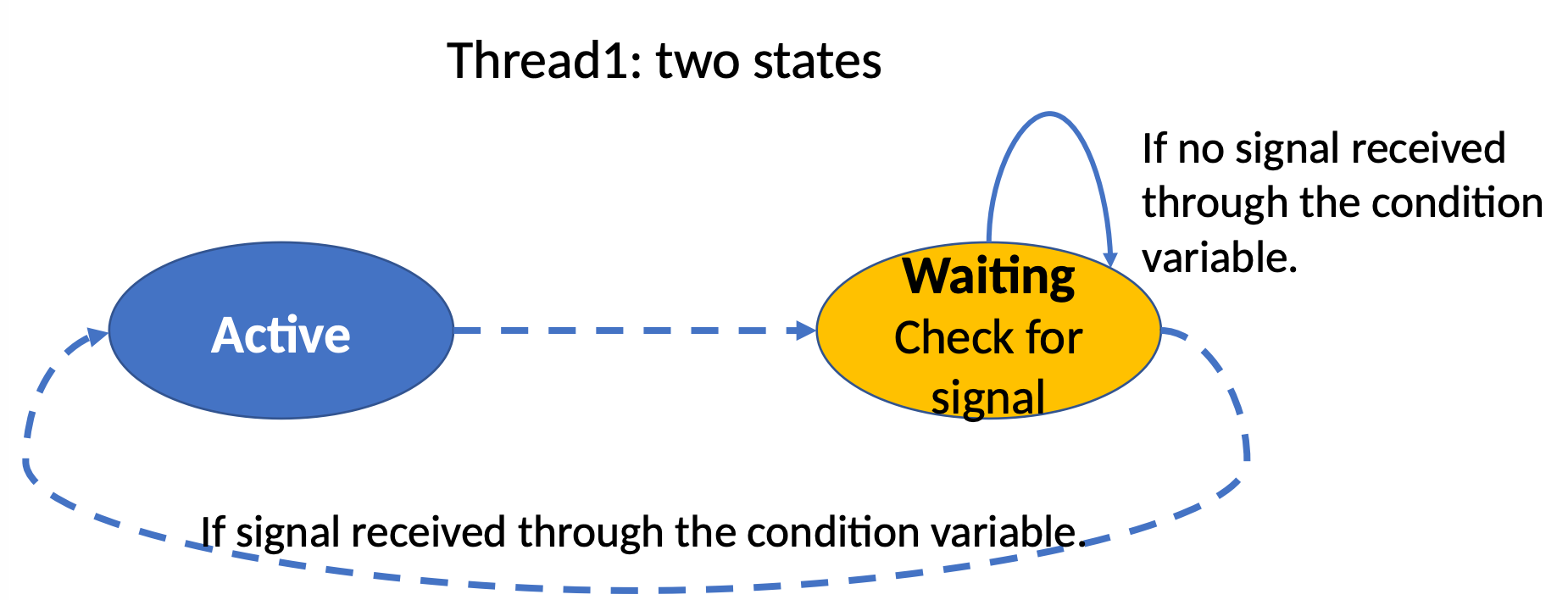 为什么条件变量需要搭配互斥锁使用? 因为仅在waiting的情况下,才会检查是否有signal。如果在waiting之前signal就来了,那么thread就会错过,进入无限等待。这个互斥锁是用来序列化操作条件变量的过程的,从而防止上面无限等待的情况发生,
