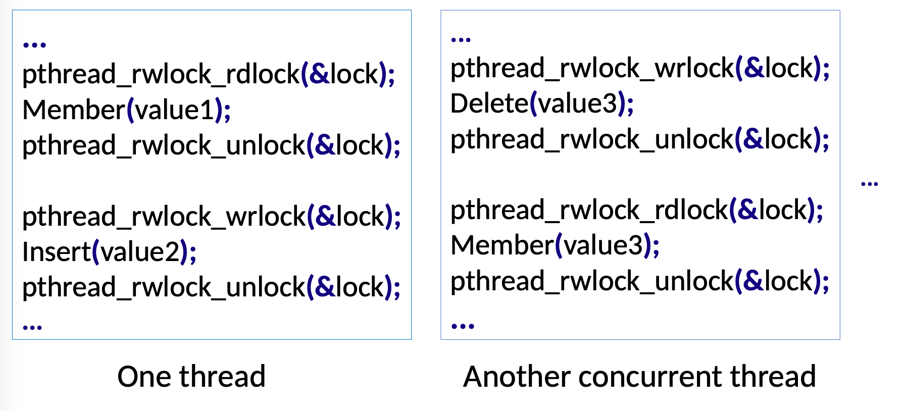 读写分开,分别上锁,allow multiple threads to read, but allow only one thread to write.