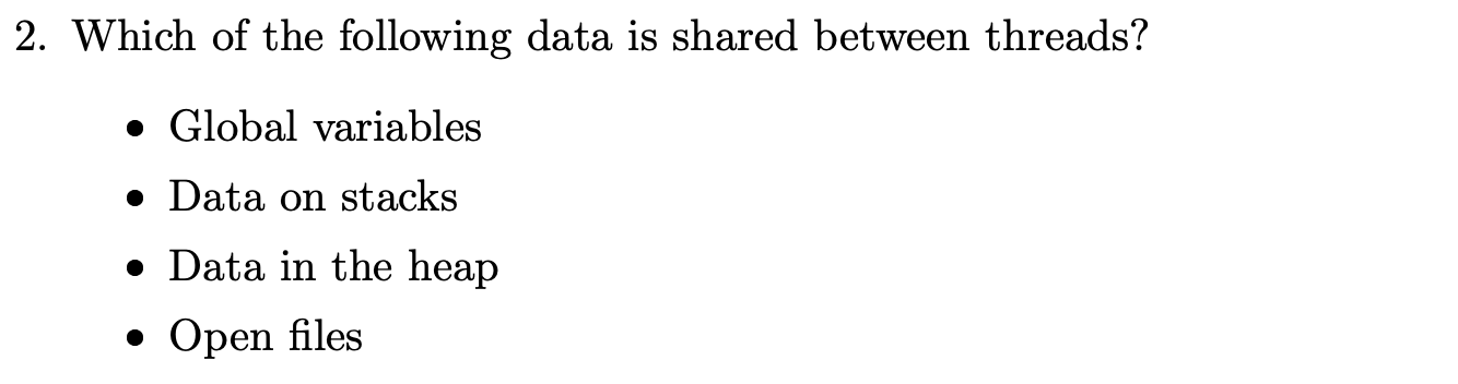 对于线程来说,栈数据是自己的,而heap, global data和其他资源例如打开的文件,sockets是共享的。