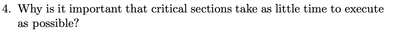 Other thread may wait and do noting while one thread is working in critical section. We must to keep waiting time(critical part) as small as possible.