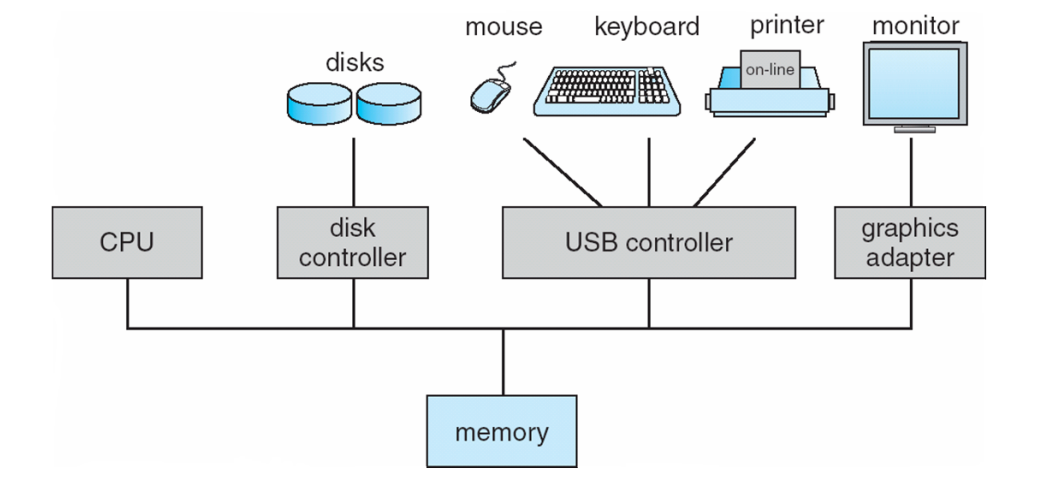 IO设备和CPU可以execute concurrently(CPU不需要等待键盘输入所有内容)。并发是通过interrupt实现的。