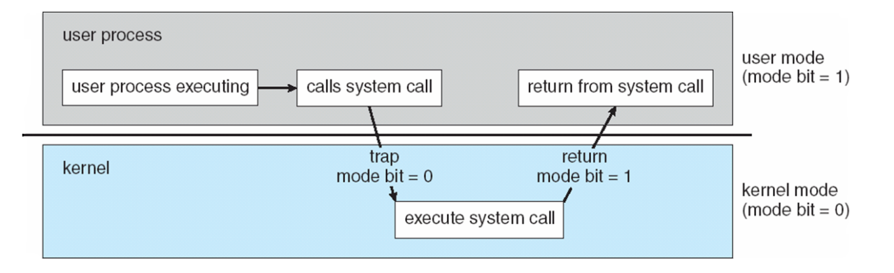 用户进程通过call一个在standard C library中名为system call wrapper function。这个wrapper function发起一个low-level的trap指令(汇编中)用来从user mode切换为kernel mode。wrapper function只用来发起system call,没有别的作用。