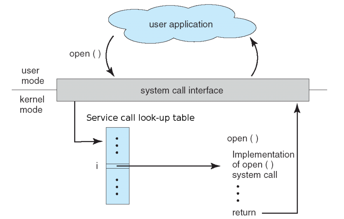 Processes通过向OS kernel发起system call来与OS交互。为了稳定性,这些calls不是对kernel functions的直接call。