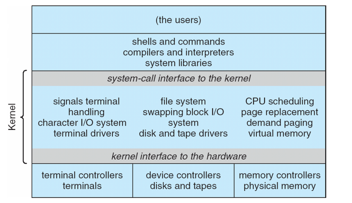 用户通过interfaces与OS间接交互,例如GUI或者command line