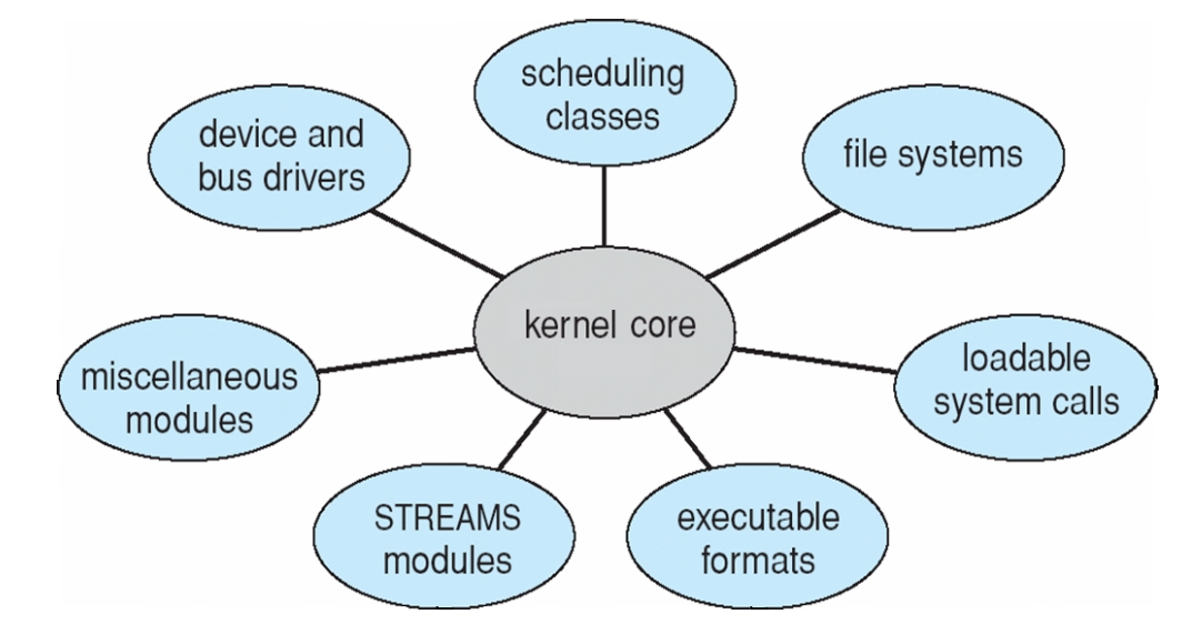 大多数现代操作系统实现了模块化kernel,使用类似面向对象的方法,每个核心组件都是独立的,它们通过已知接口相互通信。