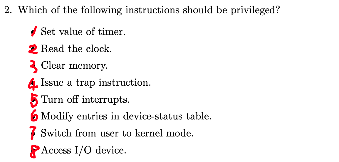 对于每个interrupt,OS运行适当的Interrupt Service Routine去处理。