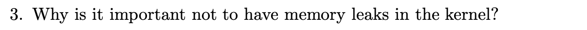 The kernel runs all the time, hence any leaked memory will never be recovered. If there is insufficient memory left, the OS will crash.