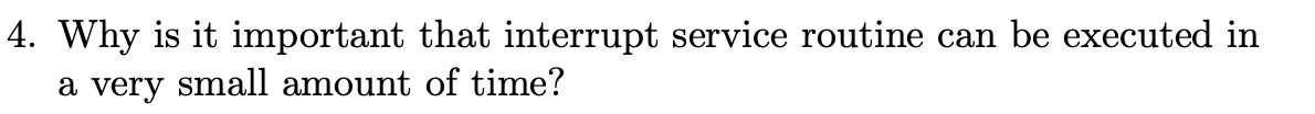 Some interrupts are typically disabled while interrupts are processed. A long interrupt processing time increases the danger of losing other interrupts.